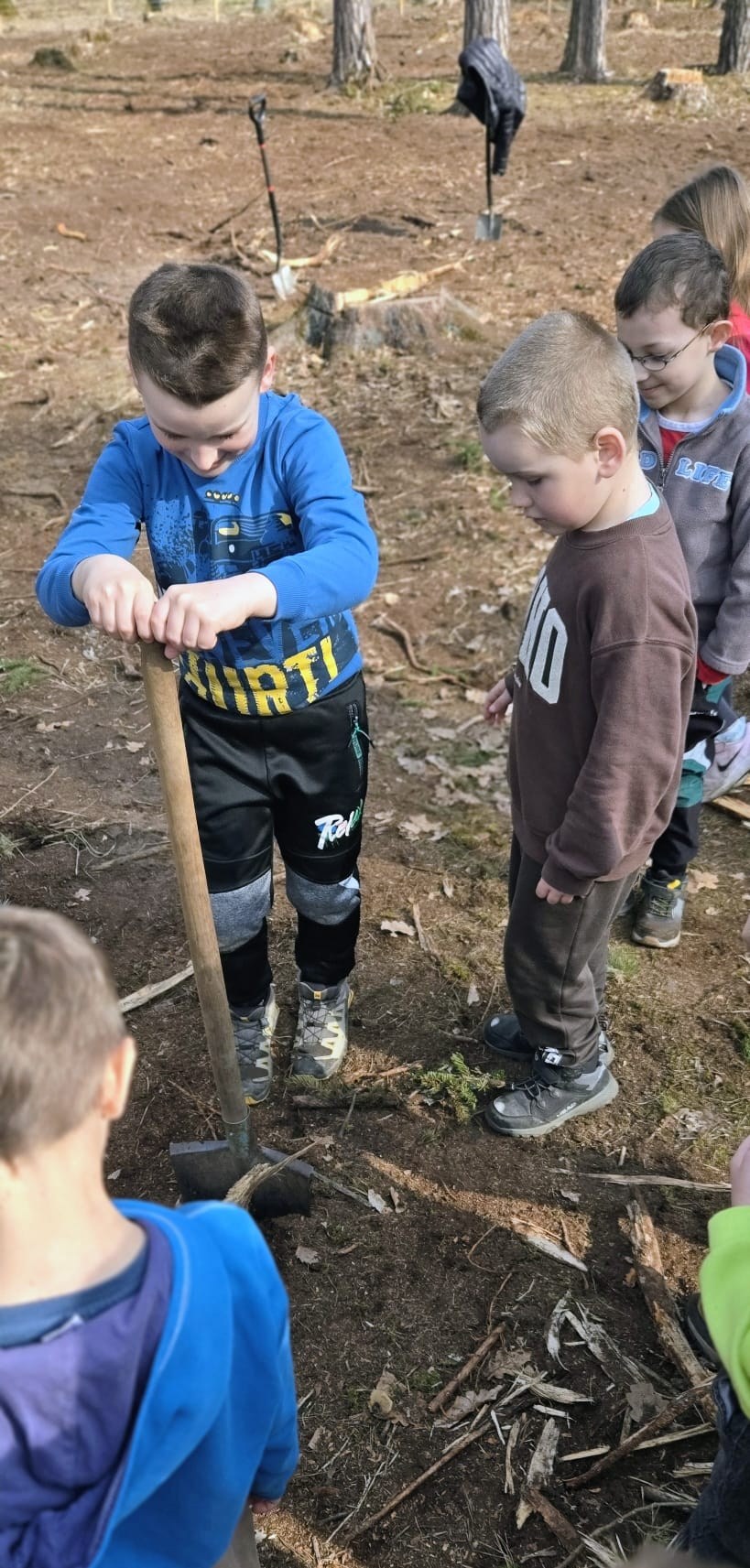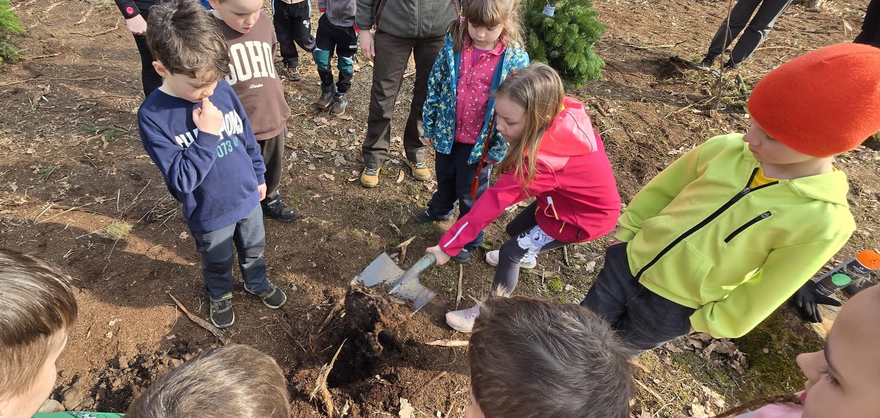 Cílem bylo zasadit stromečky, které jsme v zimě zdobili na Velkém náměstí. Děti si vyzkoušely práci s hlínou a zjistily, že ekologie není jen slovo z učebnice, ale něco, co můžeme dělat každý den – třeba právě tím, že zasadíme strom.